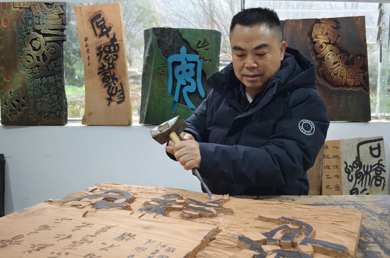 据了解,张光荣是紫云自治县第二中学高级教师,同时担任贵州省书协会员、安顺市书协理事、紫云县书协副主席等职。他深耕书法领域多年,尤其在篆书和刻字创作上成果丰硕。2024年,其刻字作品入展中国书协主办的全国第十二届刻字作品展;2023年,他的书法作品先后斩获第五届中华经典诵写大赛“笔墨中国”汉字书写大赛贵州省赛区毛笔教师组二等奖、教育部与国家语委主办的同赛事全国毛笔类教师组三等奖。