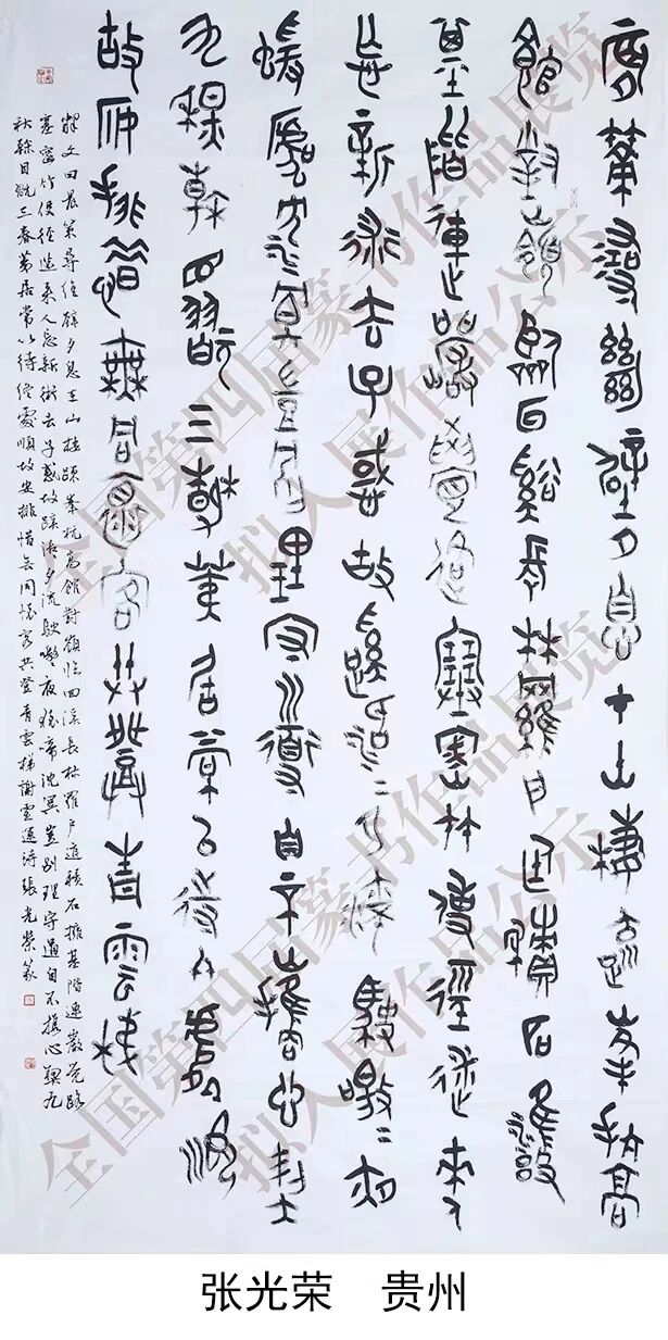 此次全国第四届篆书展是篆书领域的全国性权威展览,张光荣的作品能从中脱颖而出,充分展现了他深厚的书法功底,同时也彰显了紫云县近年来文艺创作水平的稳步提升。